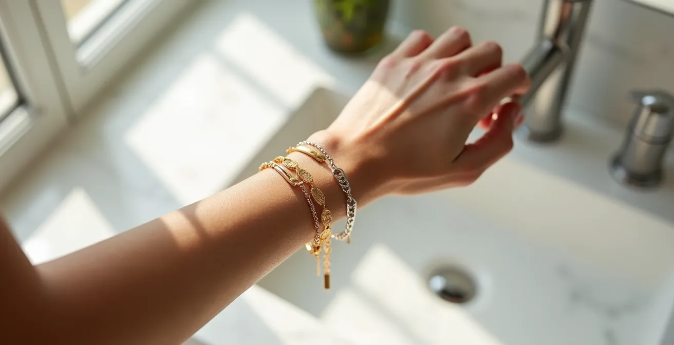 - Schaffen Sie eine Barriere: Tragen Sie das Schmuckstück über der Kleidung, zum Beispiel eine Kette über einem Rollkragenpullover, statt direkt auf der Haut.