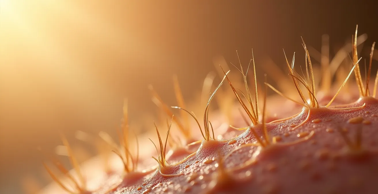 Gelegentlicher Juckreiz ist meist harmlos. Wenn er jedoch chronisch wird, deutet dies auf ein tieferliegendes Problem hin: eine anhaltende Entzündung der Kopfhaut. Diese sogenannten Mikroentzündungen sind oft mit blossem Auge nicht sichtbar, schädigen aber auf Dauer die Haarfollikel. Unter normalen Umständen erneuert sich unsere Kopfhaut normalerweise alle 28 Tage in einem geordneten Zyklus. Chronische Entzündungen beschleunigen diesen Prozess drastisch, was zu sichtbaren Schuppen und einer geschwächten Hautbarriere führt.